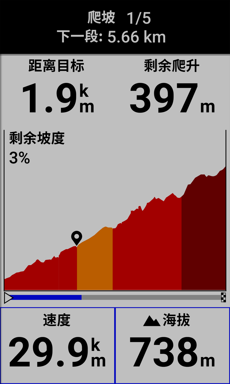 开始爬坡时,ClimbPro 爬坡规划页面将自动显示。