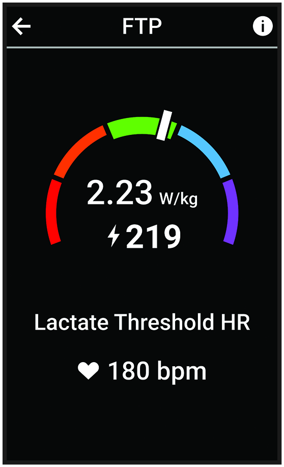 The device uses your user profile information from the initial setup to estimate your functional threshold power (FTP). For a more accurate FTP value, you can conduct an FTP test using a paired power meter and heart rate monitor ().