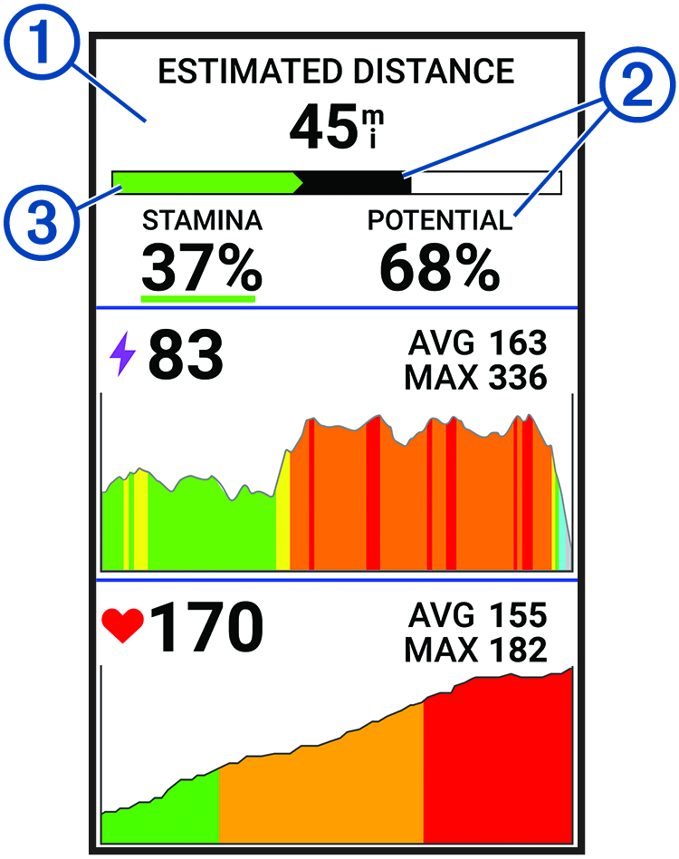 Thiết bị của bạn có thể cung cấp ước tính thể lực theo thời gian thực dựa trên dữ liệu nhịp tim và ước tính VO2 tối đa của bạn (Ước tính VO2 tối đa). Cường độ thực hiện một hoạt động cao sẽ ảnh hưởng đến tốc độ giảm sức chịu đựng của bạn. Theo dõi sức bền theo thời gian thực hoạt động bằng cách kết hợp các chỉ số sinh lý với lịch sử hoạt động gần đây và lâu dài của bạn, chẳng hạn như thời lượng tập luyện, khoảng cách đã thực hiện và tải trọng tập luyện tích lũy (Đo lường hiệu suất).