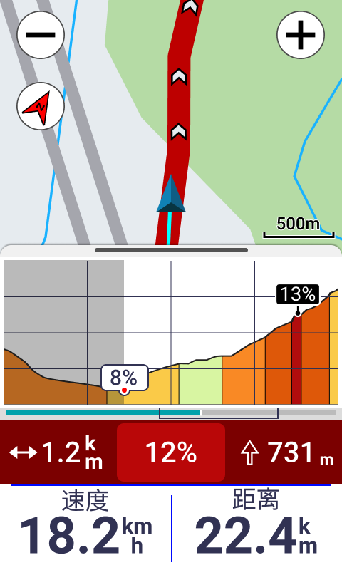 提示:爬坡资讯也会显示在路线的详细信息中(查看路线详情,第15页)。