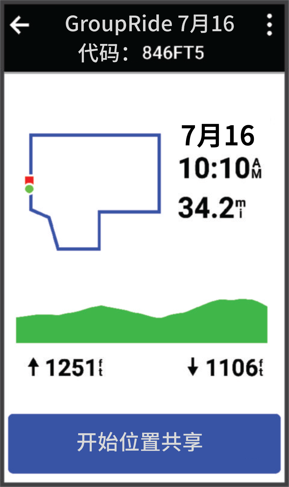 通过 Garmin Connect 应用程序与您的联系人共享 GroupRide 代码。