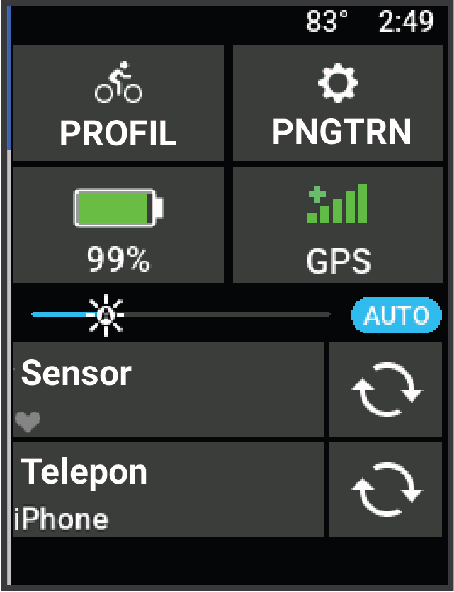Widget pengaturan muncul. Ikon berkedip menunjukkan perangkat sedang mencari sinyal. Ikon terus menyala artinya sinyal ditemukan atau sensor telah terhubung. Anda dapat memilih ikon apa saja untuk mengubah pengaturan.