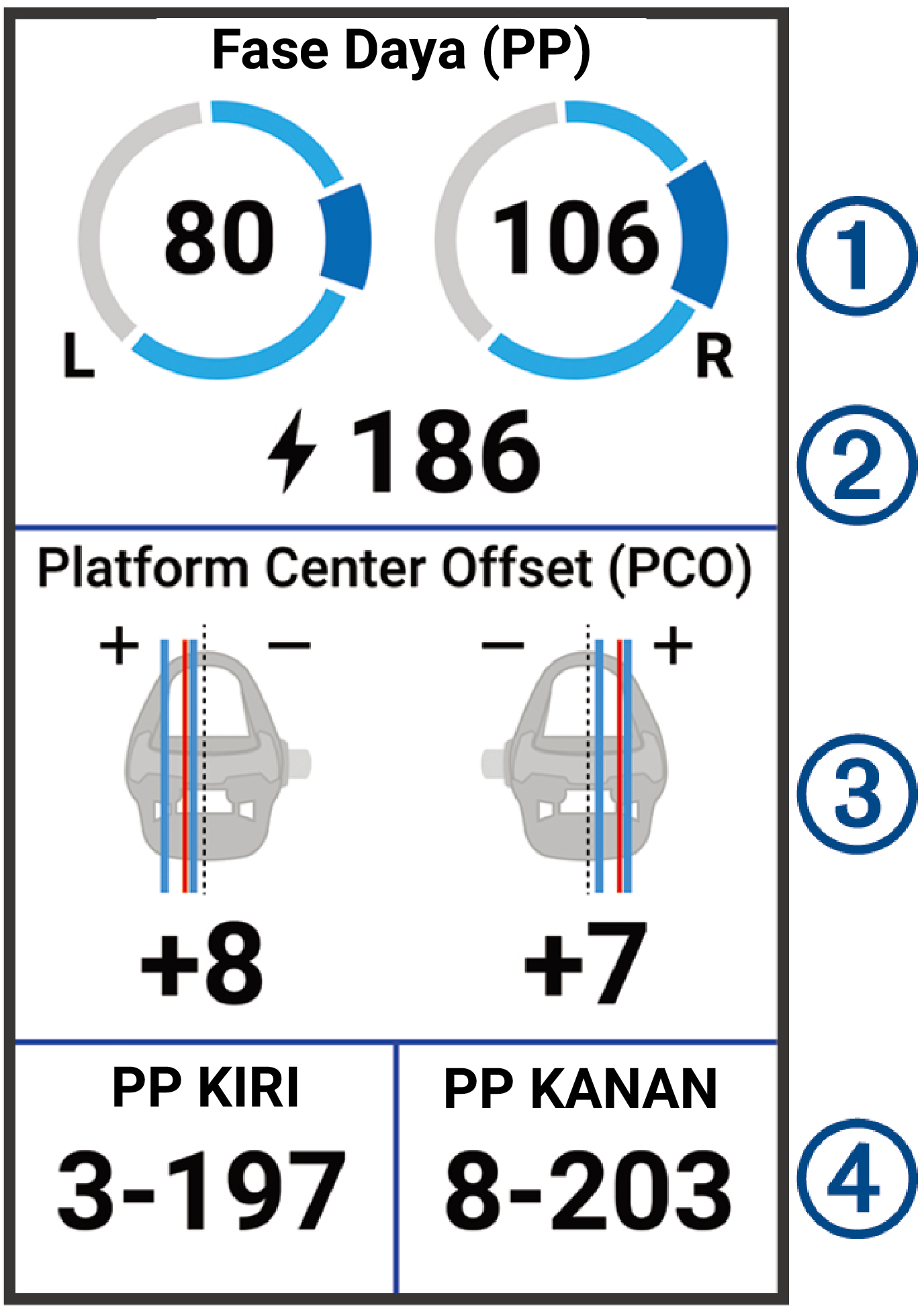 - Gulir ke layar dinamika bersepeda untuk melihat data fase daya
