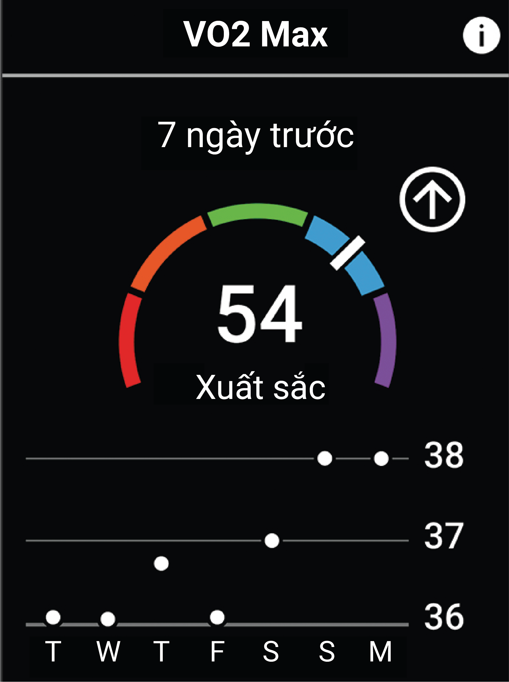 để xem VO2 tối đa.Ước tính VO2 tối đa hiển thị dưới dạng số và vị trí trên ứng dụng đo màu.