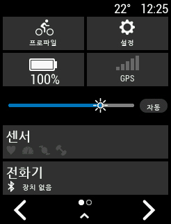설정 위젯이 나타납니다. 점멸하는 아이콘은 장치가 신호를 찾고 있음을 의미합니다. 점멸하지 않는 아이콘은 신호를 찾았거나 센서가 연결되었음을 의미합니다.