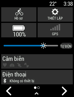 Công cụ thiết lập xuất hiện. Một biểu tượng nhấp nháy nghĩa là thiết bị đang tìm tín hiệu. Một biểu tượng cố định có nghĩa là tín hiệu được tìm thấy hoặc cảm biến được kết nối. Bạn có thể chọn biểu tượng bất kỳ để thay đổi thiết lập.