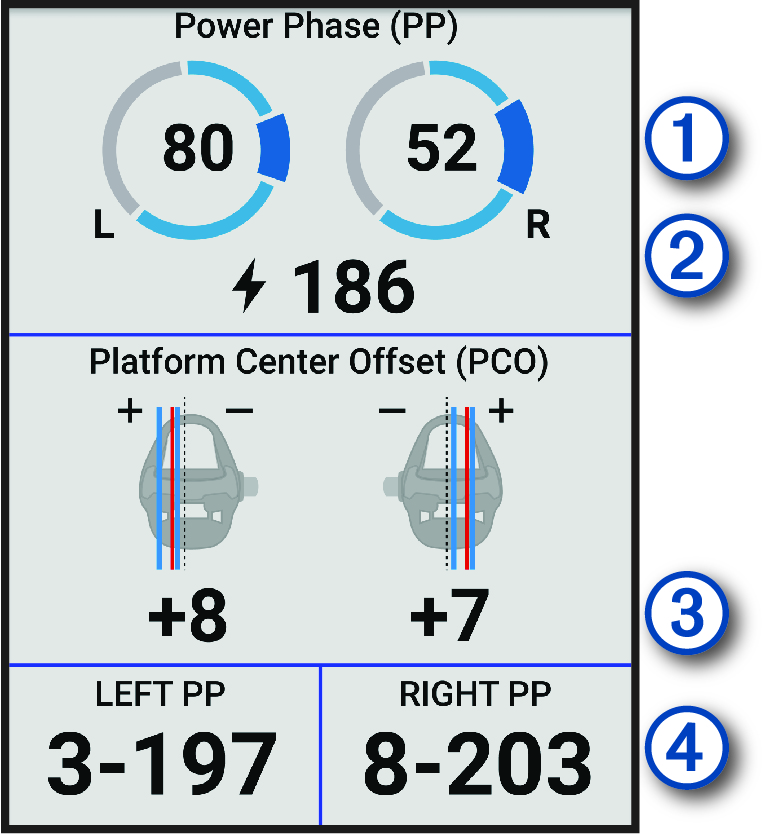 - Scroll to the cycling dynamics screen to view your power phase data