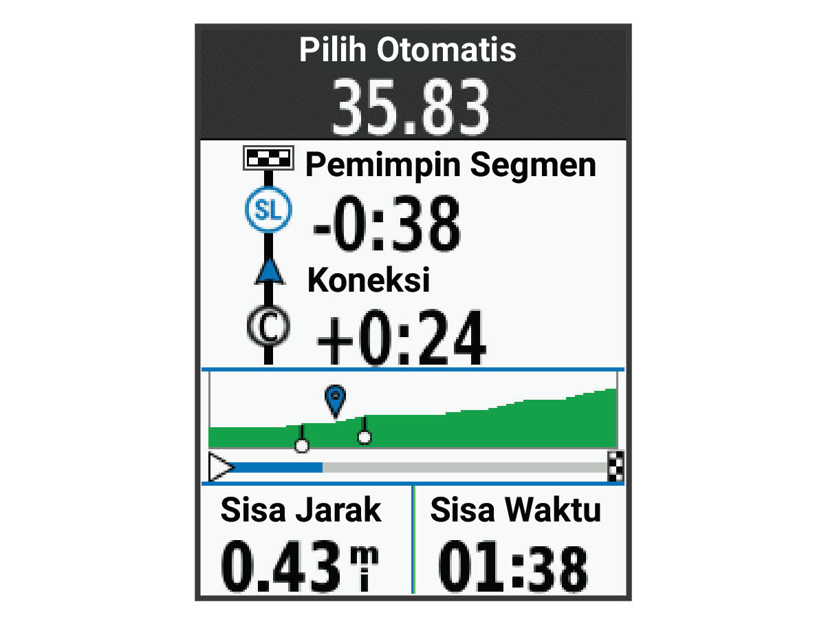 Segmen adalah jalur balap virtual. Anda dapat balapan segmen, dan membandingkan antara performa dan aktivitas terdahulu Anda, performa pengendara lain, koneksi dalam akun Garmin Connect, atau anggota lain dari komunitas sepeda. Anda dapat mengunggah data aktivitas ke akun Garmin Connect untuk melihat posisi segmen.
