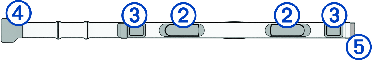 - 将胸带在胸部戴妥,并连接带扣 ④ 和带环 ⑤。