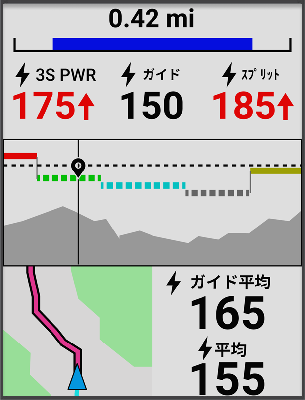 パワーガイドは、ワークアウトやセグメントでは使用できません。作成したパワー戦略はGarmin Connectで表示・編集し、パワーガイド機能対応の Garminデバイスに転送することができます。