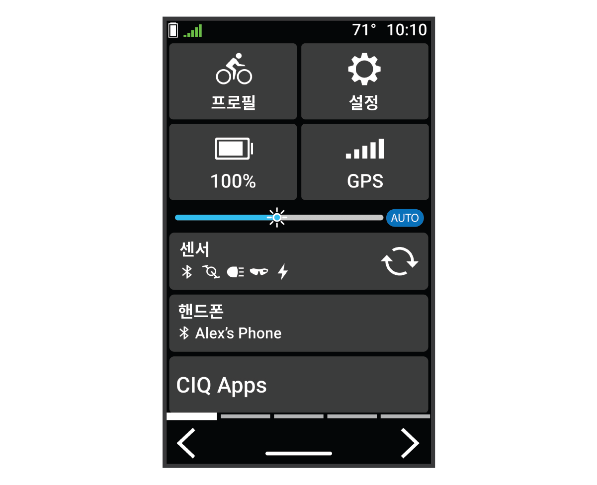 설정 위젯이 나타납니다. 점멸하는 아이콘은 장치가 신호를 찾고 있음을 의미합니다. 점멸하지 않는 아이콘은 신호를 찾았거나 센서가 연결되었음을 의미합니다. 아무 아이콘이나 선택하여 설정을 변경할 수 있습니다.