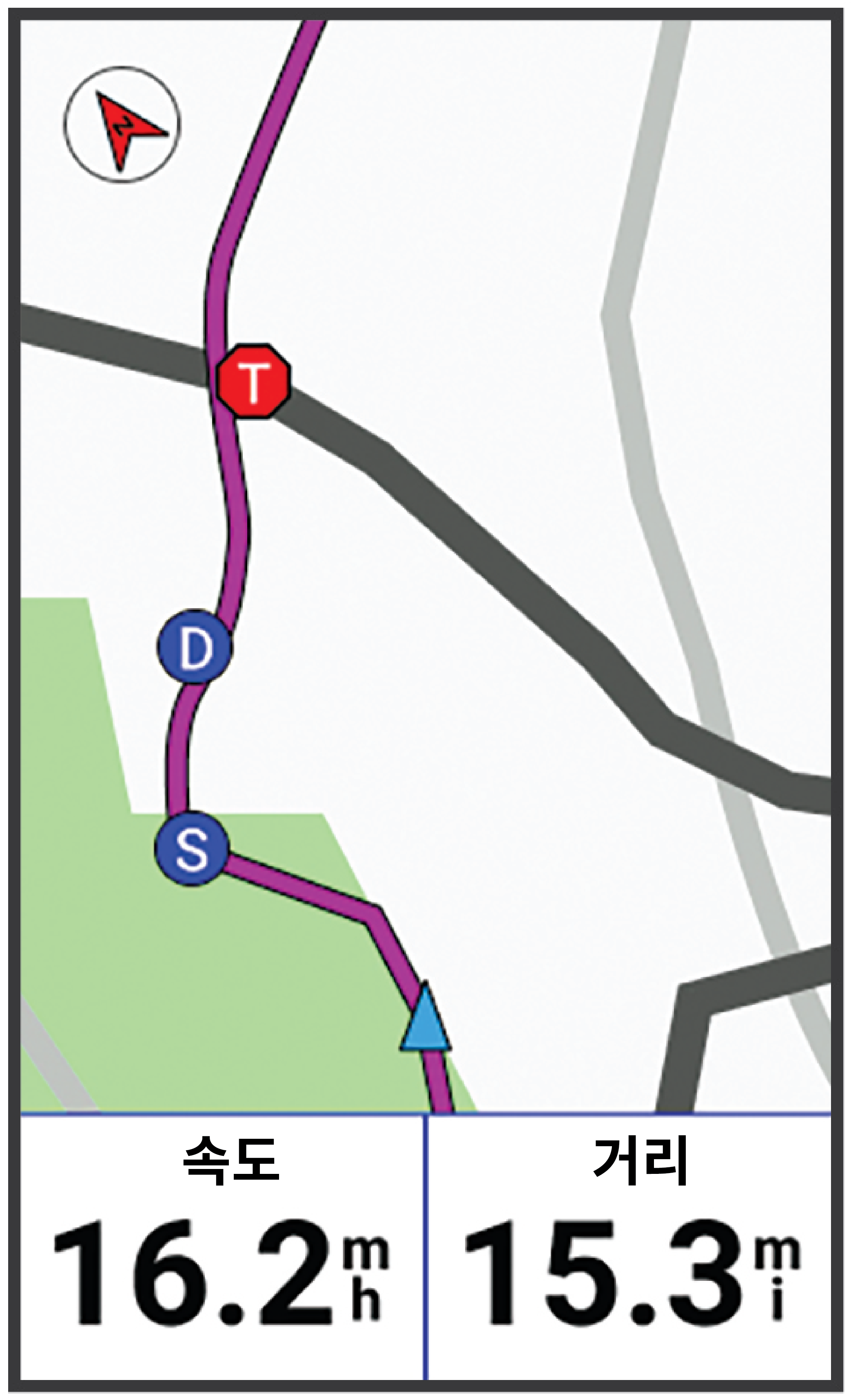 GroupTrack의 기능을 통해 화면 상에서 직접 LiveTrack을 사용하여 그룹 내의 다른 라이더를 파악할 수 있습니다. 그룹 내의 모든 라이더는 귀하의 Garmin Connect 계정에 연결되어 있어야 합니다.