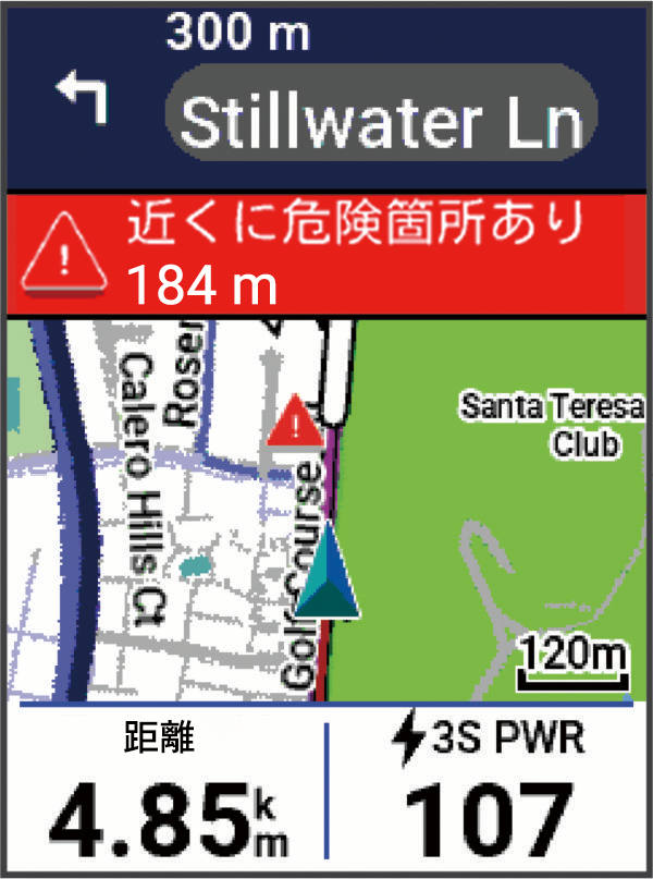 を選択します。- ナビゲーションの地図上に危険箇所が表示され、接近したときにアラート音でお知らせします。( アラートとプロンプトの設定)