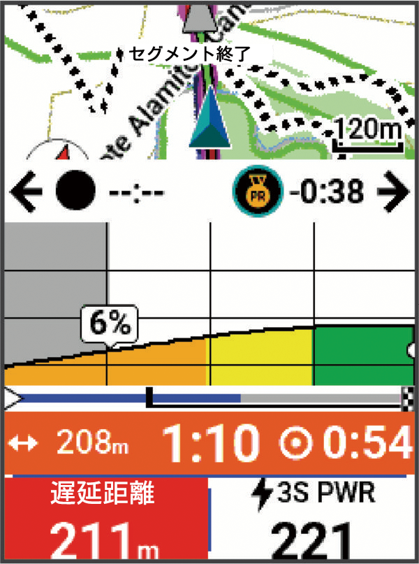 注意:Garmin ConnectアカウントとStravaアカウントをリンクしている場合、アクティビティデータは自動でStravaアカウントにもアップロードされ、セグメントの区間を確認できます。