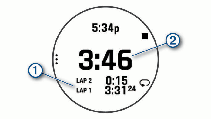 - Untuk menyimpan waktu stopwatch sebagai aktivitas, tekan MENU, dan pilih Simpan Aktivitas.