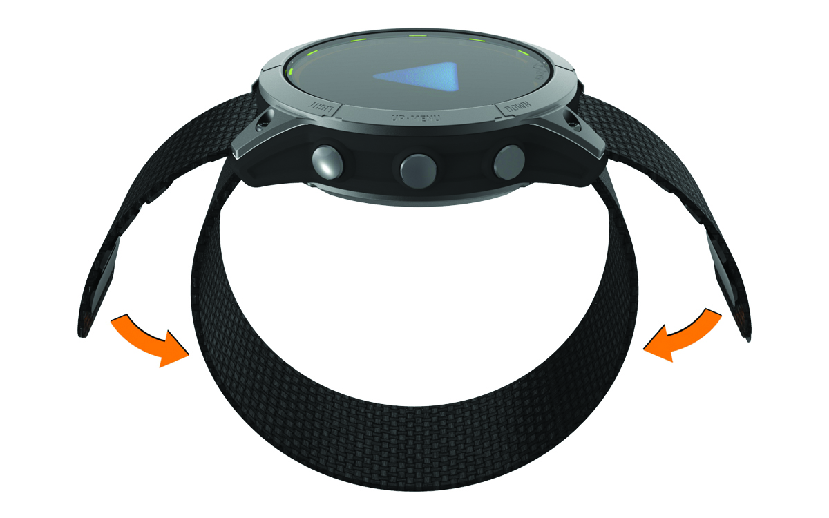 การเปลี่ยนสายไนลอนแบบ UltraFit ร้อยปลายข้างหนึ่งของสายผ่านช่องเปิดระหว่างพินและตัวเรือนนาฬิกา ร้อยปลายอีกข้างหนึ่งของสายผ่านอีกด้านหนึ่งของอุปกรณ์ เกี่ยวตะขอและตัวปิดวงบนสายนาฬิกาให้เข้ากับข้อมือของคุณ หน้าหลักข้อมูลอุปกรณ์การเปลี่ยนสายไนลอนแบบ UltraFit