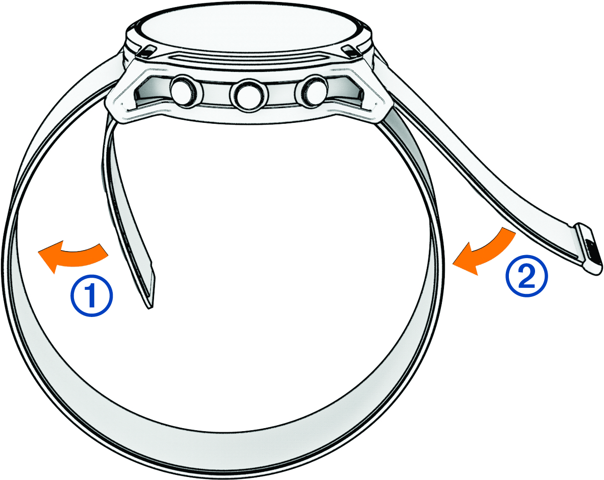 - 調整到舒適的鬆緊度後,將錶帶另一端 ② 的魔鬼氈貼牢。