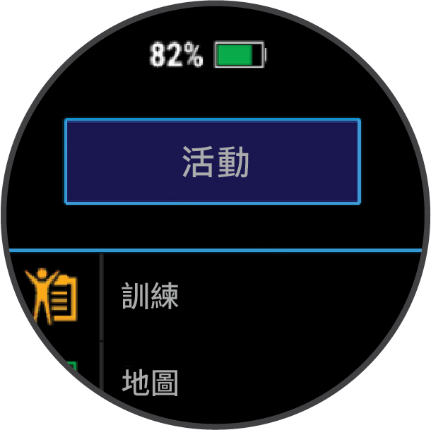 您可以使用應用程式選單自訂手錶,以快速存取手錶功能及選項。部分應用程式需要藍牙連結相容的手機。許多應用程式也可以在概覽(概覽)或快捷目錄(快捷目錄)中找到。