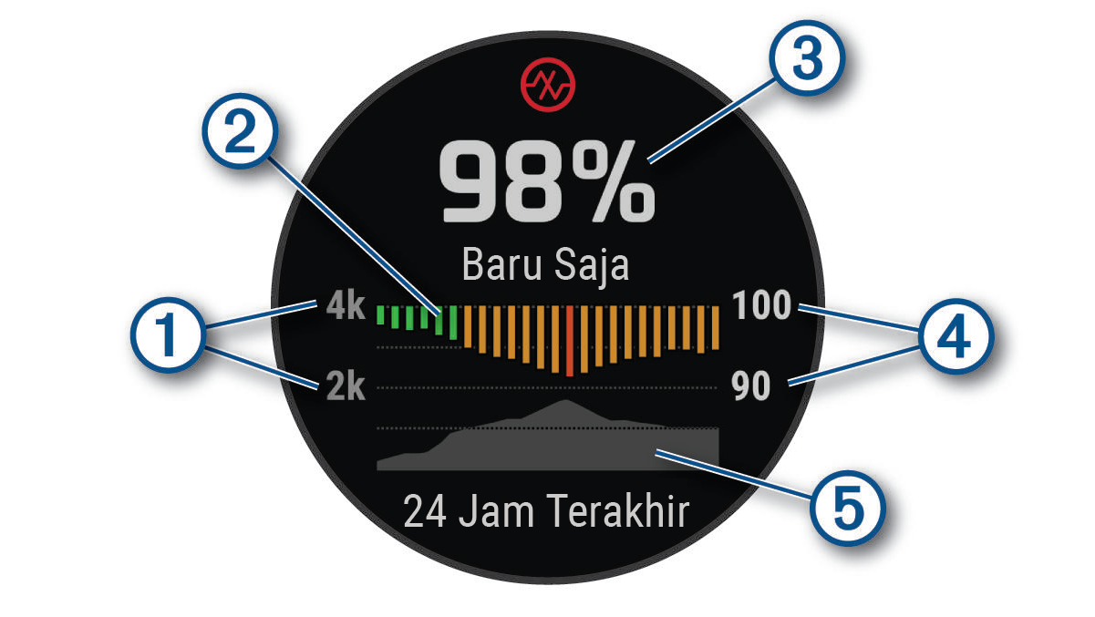 Untuk informasi selengkapnya tentang keakuratan pulse oximeter, kunjungi Garmin.co.id/legal/atdisclaimer.