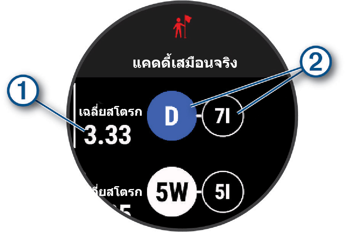 หมายเหตุ: อุปกรณ์จะคำนวณคำแนะนำของไม้กอล์ฟใหม่อีกครั้งโดยอัตโนมัติเมื่อคุณดำเนินการผ่านสนาม คุณสามารถเลือก คำนวณใหม่ เพื่ออัปเดตคำแนะนำไม้กอล์ฟได้ด้วยตนเอง