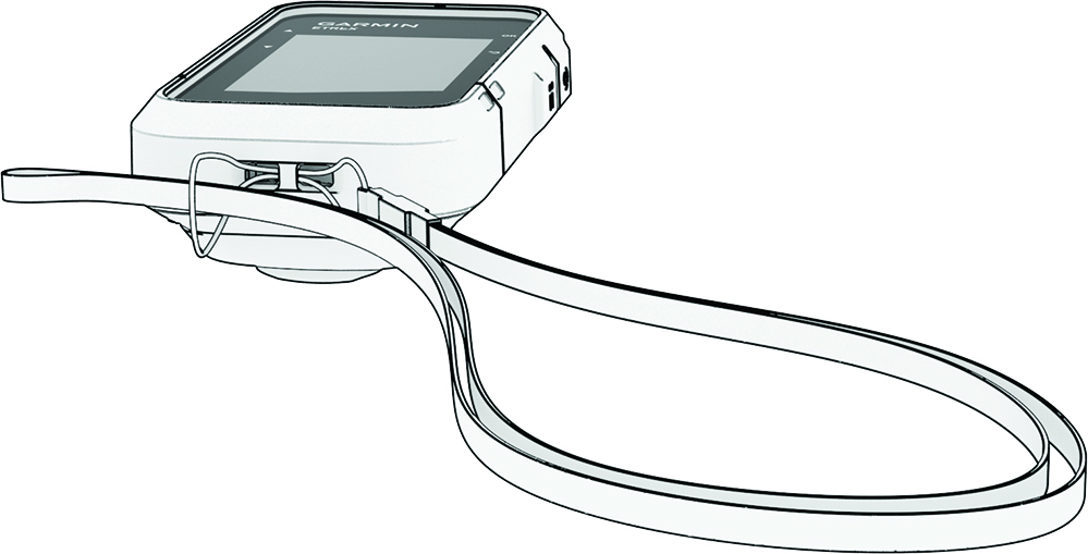 การติดสายคล้อง สอดห่วงของสายคล้องข้อมือผ่านช่องว่างในอุปกรณ์ ร้อยปลายอีกข้างหนึ่งของสายผ่านห่วงและดึงให้แน่น หากจำเป็น ให้ผูกเชือกคล้องเข้ากับเสื้อผ้าหรือกระเป๋าเป้ของคุณเพื่อคล้องระหว่างทำกิจกรรม หน้าหลักภาคผนวกการติดสายคล้อง