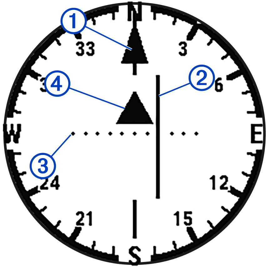 Chỉ báo độ lệch hành trình (CDI). Cho biết vị trí của hành trình mong muốn liên quan đến vị trí của bạn. Nếu CDI khớp với kim chỉ hướng, bạn đang đi đúng hướng. |