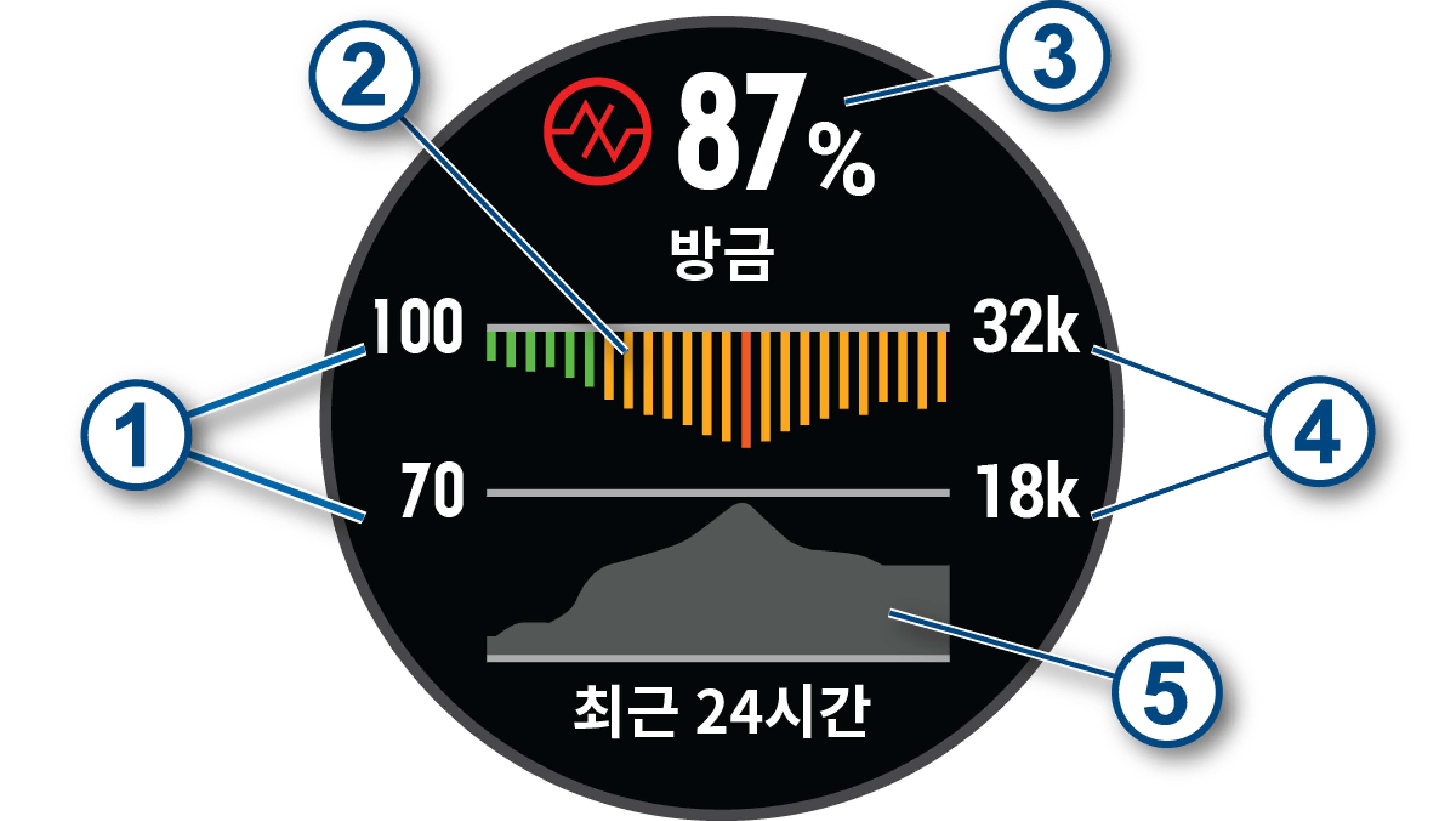 fēnix 5X Plus 장치는 혈액 내의 산소 포화도를 모니터링하기 위한 손목 기반 펄스 옥시미터를 내장하고 있습니다. 자신의 산소 포화도를 알면 내 몸이 알파인 스포츠나 탐험을 위하여 고고도에 적응하는 방식을 알아내는데 도움이 됩니다. 몸을 움직이지 않는 상태에서 펄스 옥시미터 위젯을 보면, 장치는 사용자의 산소 포화도와 현재 고도를 분석합니다.