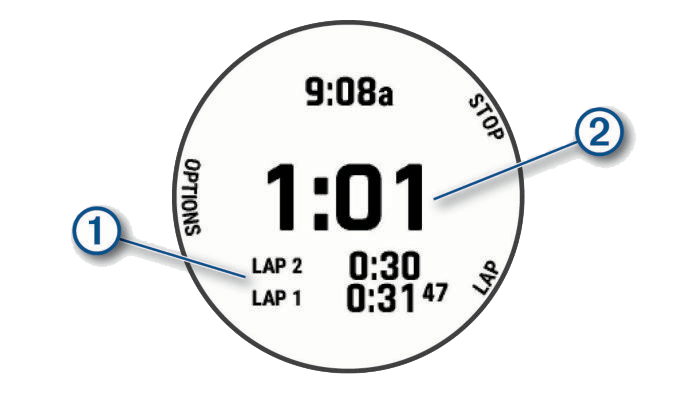 1. กด เพื่อหยุดเครื่องจับเวลาทั้งคู่
