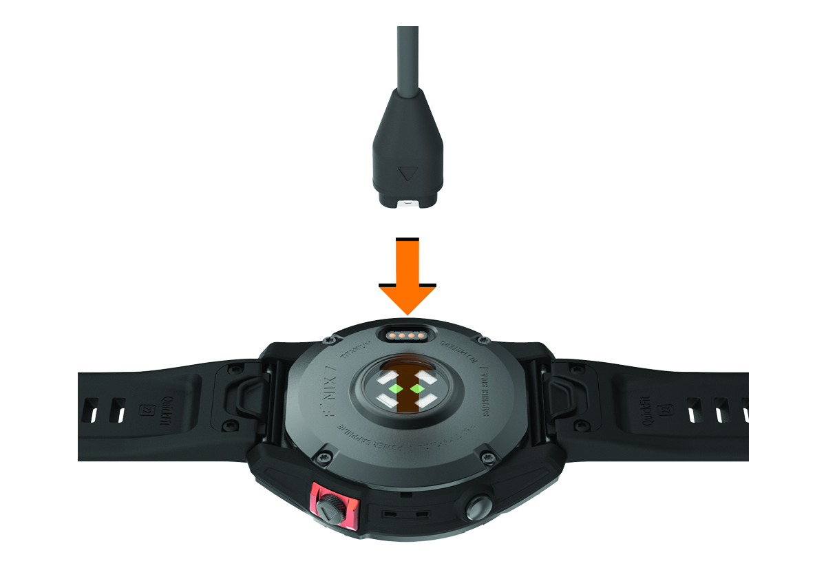 - USB 케이블의 작은 단자를 시계의 충전 포트에 꼽습니다.