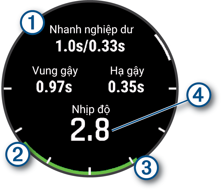 Bạn có thể đạt được nhịp độ lý tưởng 3.0 khi sử dụng những thời điểm xoay người đánh bóng khác nhau, ví dụ, 0,7 giây/0,23 giây hoặc 1,2 giây/0,4 giây. Mỗi người chơi golf có thể có nhịp độ xoay người đánh bóng riêng dựa trên khả năng và kinh nghiệm của họ. Garmin cung cấp sáu thời điểm khác nhau.