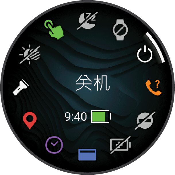 通过控制菜单,您可以快速访问手表功能和选项。您可以添加、重新排序和移除控件菜单中的选项(自定义控制菜单)。