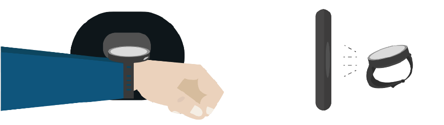- 儲值或交易時,以手錶頂端(12點鐘)靠近讀卡機感應加值及扣款,即可完成交易。