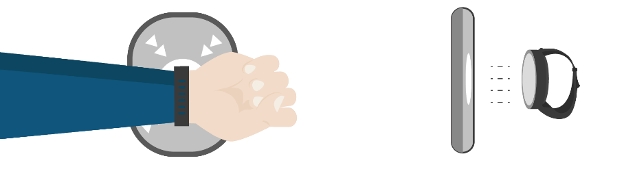 - 儲值或交易時,只需將手錶正面靠近讀卡機感應加值及扣款,即可完成交易。