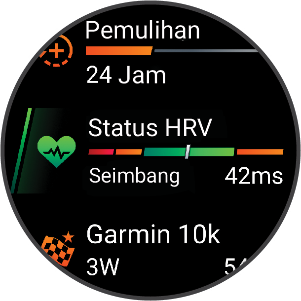 Kilasan menyediakan akses cepat ke data kesehatan, informasi aktivitas, sensor internal, dan lainnya. Ketika Anda menghubungkan jam tangan, data-data dari ponsel seperti notifikasi, cuaca, dan acara kalender juga dapat dilihat.
