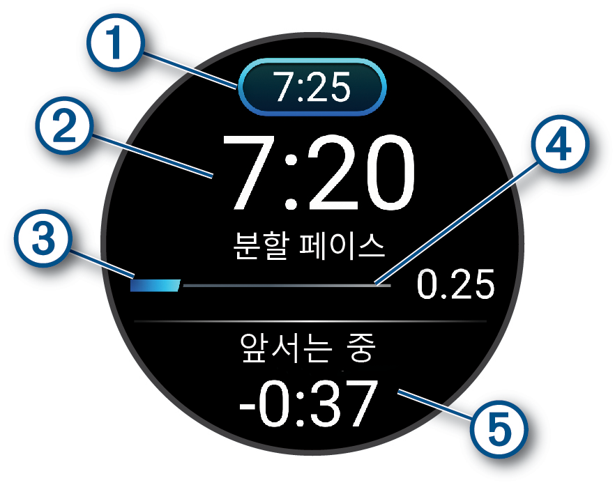 목표 페이스에 대한 총 앞선 시간 또는 뒤쳐진 시간 |