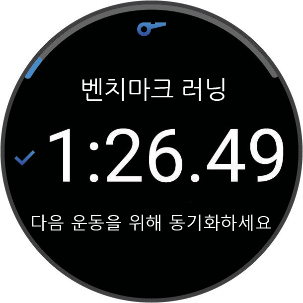 이 활동에 대한 워크아웃이 오늘로 예정되어 있는 경우, 워치는 워크아웃 이름을 보여주며 이 워크아웃을 시작하도록 유도합니다.