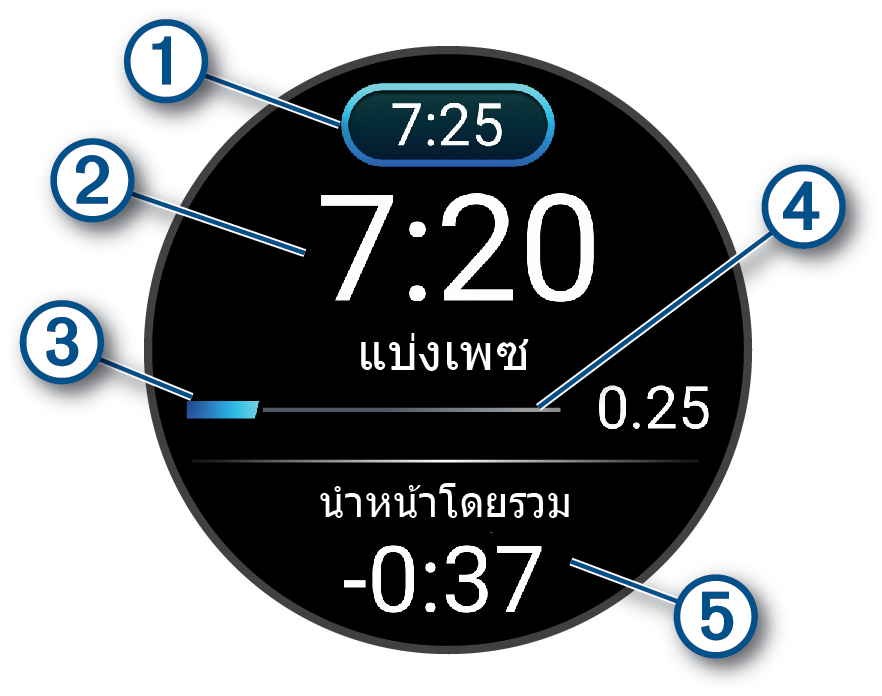 เวลาโดยรวมก่อนหรือหลังเวลาเป้าหมายของคุณ |