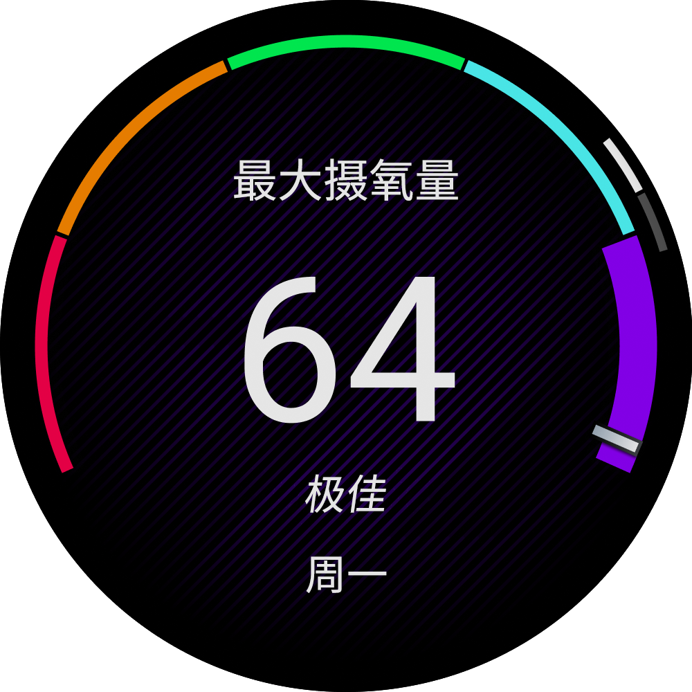 最大摄氧量是您在表现最好时,每分钟每公斤体重的最大耗氧量(以毫升为单位)。简单来说,最大摄氧量是运动成效的指标,而且它应该会随着您的体能进步而提升。Forerunner设备需要腕式心率或者兼容的心率带获取最大摄氧量。