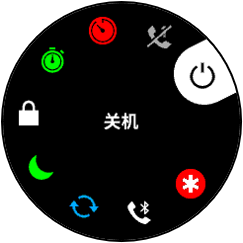查看控制菜单控制菜单内有快捷菜单选项,例如打开勿扰模式、锁定按键以及设备关机等。备注:控制菜单中可以新增、重新排序和删除项目(自定义控制菜单, 第 22 页)。 在任何页面,长按 LIGHT 键。 按下 UP 键或 DOWN 键切换功能选项。 主页 产品介绍查看控制菜单