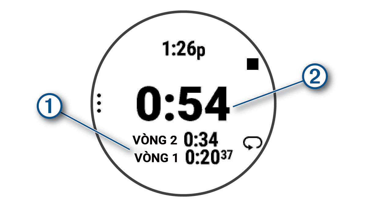 - Để bật hoặc tắt tính năng ghi lại vòng hoạt động, nhấn UP, và chọn Phím vòng.