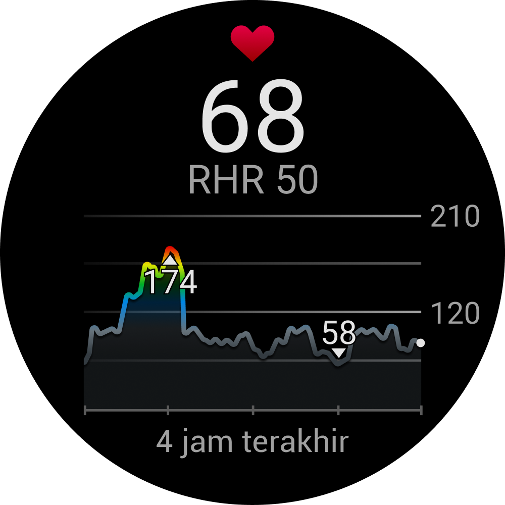 - Dari tampilan jam, tekan UP atau DOWN untuk melihat kilasan denyut jantung.