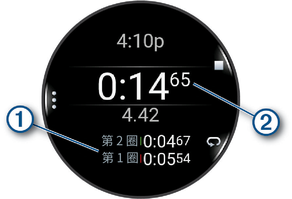 - 要启用或禁用圈记录,按 UP,然后选择 计圈键。