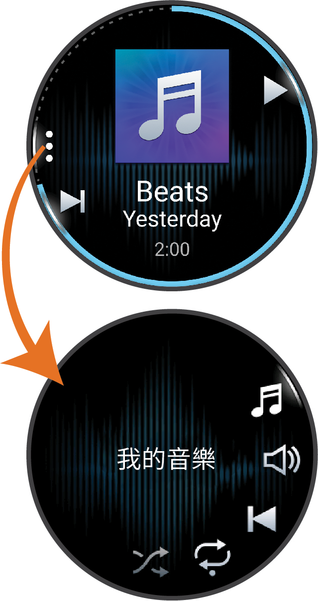 選擇以檢視更多音樂播放控制。 |