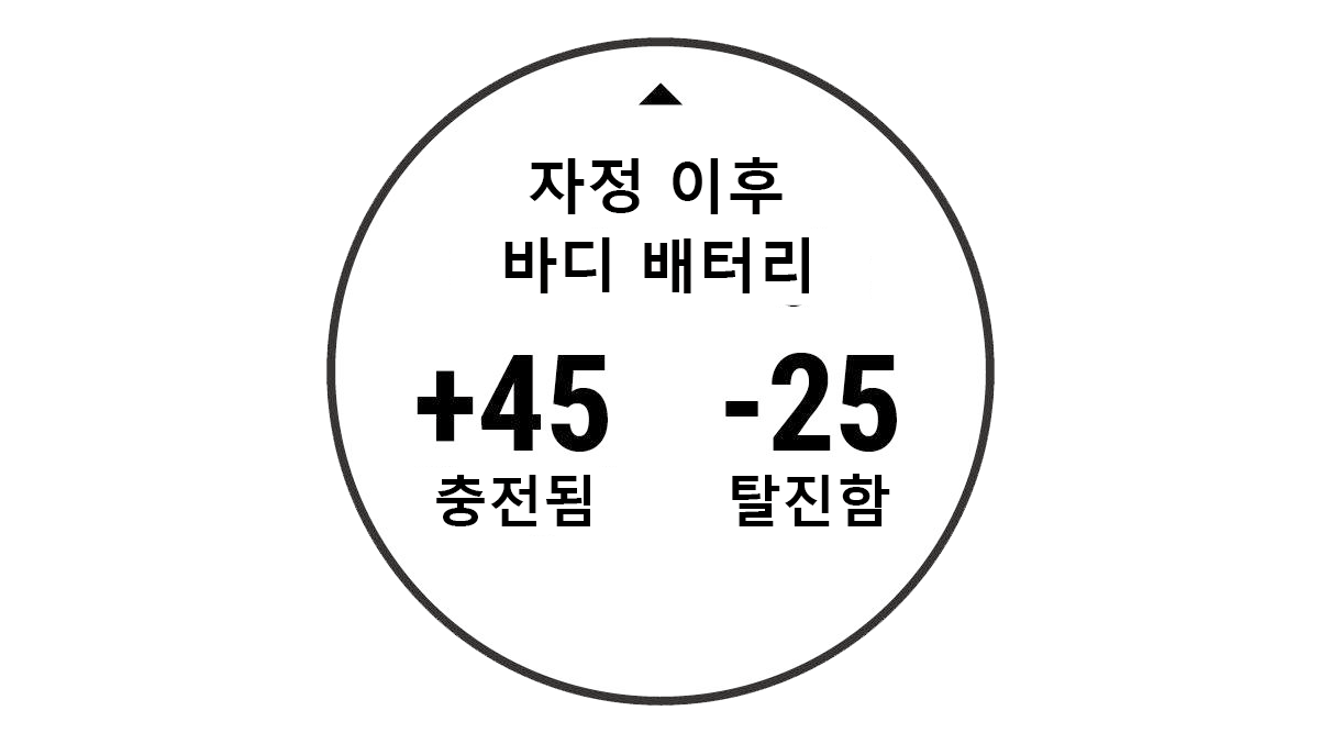 - 자정 이후의 바디 배터리 데이터를 보려면 DOWN을 누릅니다.
