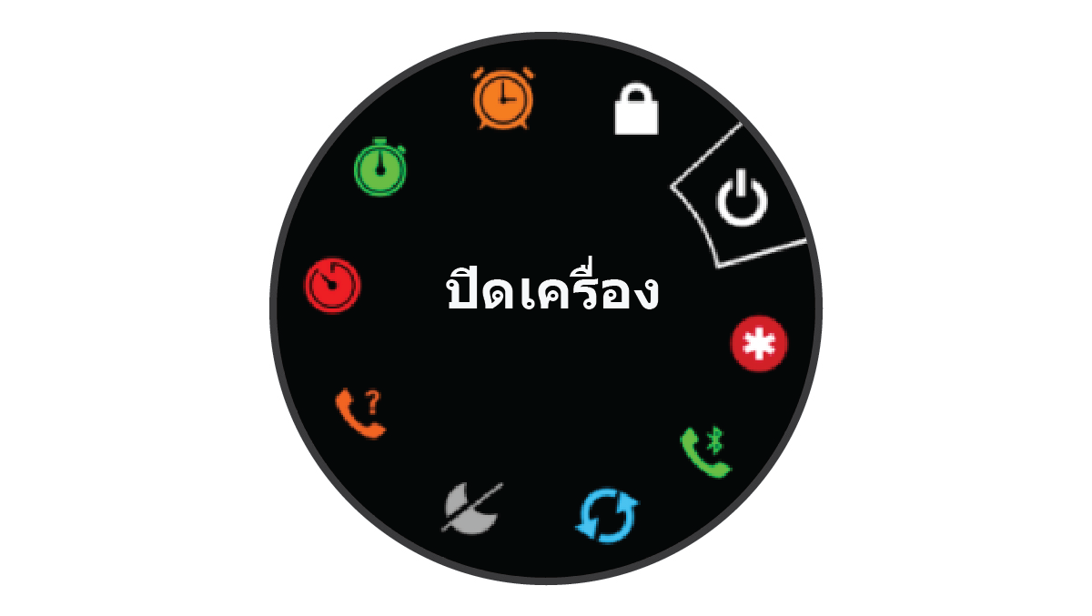 การดูเมนูควบคุมเมนูการควบคุมประกอบด้วยตัวเลือกต่าง ๆ เช่น การเปิดโหมดห้ามรบกวน, การล็อกปุ่มกด, และการปิดอุปกรณ์ จากหน้าจอใด ๆ กดค้าง LIGHT เลือก UP หรือ DOWN เพื่อเลื่อนดูตัวเลือกต่างๆ หน้าหลักบทนำการดูเมนูควบคุม