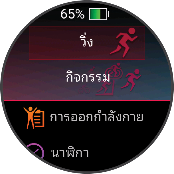 เพื่อเลื่อนดูรายการกิจกรรม รายการกิจกรรมโปรดของคุณจะปรากฏอยู่ที่ด้านบนของรายการ (การปรับแต่งรายการกิจกรรมโปรดของคุณ)