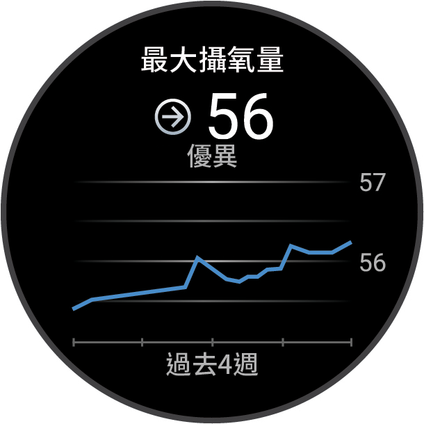 為了獲得最準確的估算值,請完成個人資料設定(設定您的使用者資訊)並設定您的最大心率(設定您的心率區間)。估算值一開始可能會不太準確,這是由於手錶需要數次的跑步資料來瞭解您的跑步表現。您可以在超馬與越野跑活動中停用最大攝氧量記錄,以避免影響您的最大攝氧量估算值(活動設定)。