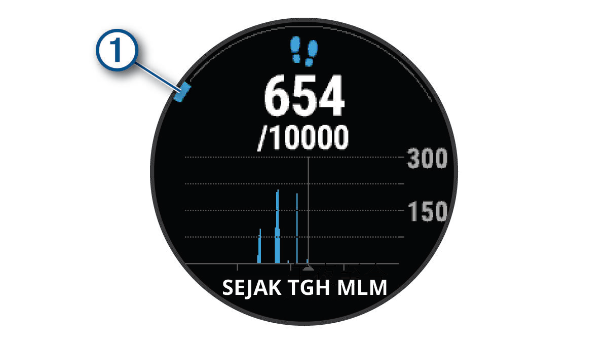 Berdasarkan tingkat aktivitas Anda sebelumnya, perangkat akan membuat target langkah harian secara otomatis. Selama Anda bergerak seharian, perangkat akan menampilkan progres terhadap target harian Anda