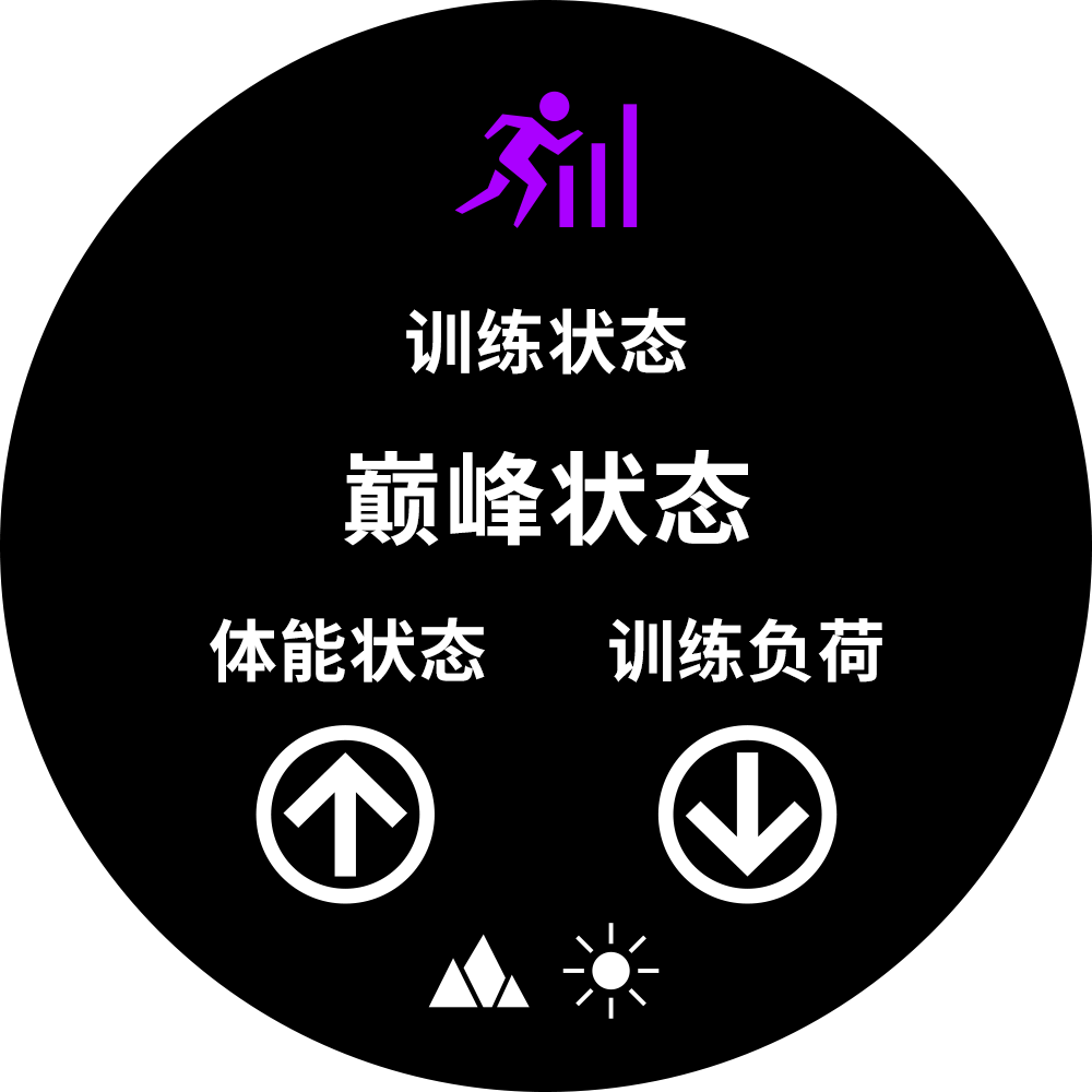 训练状态:训练状态显示您的训练如何影响您的健身和表现。您的训练状态是基于一定时间内您的训练负荷和最大摄氧量的变化而变化的。