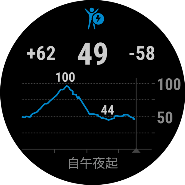 您的设备会分析您的心率变化、压力水平、睡眠质量和活动数据,以确定您的整体身体电量水平。就像汽车上的燃油表,表示您可用的储备能量。身体电量范围从0到 100,其中0到25是低储备能量,26 到50是中等储备能量,51 到75是高储备能量,76 到100是非常高的储备能量。